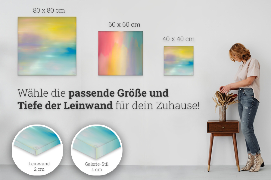 Unsere Leinwände werden von Hand in Deutschland hergestellt und überzeugen mit brillianter Schärfe, satten Farben und feiner Struktur.