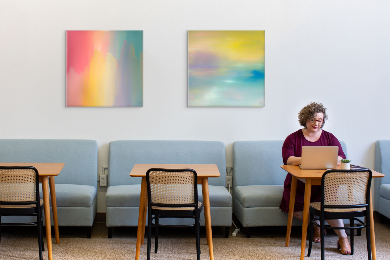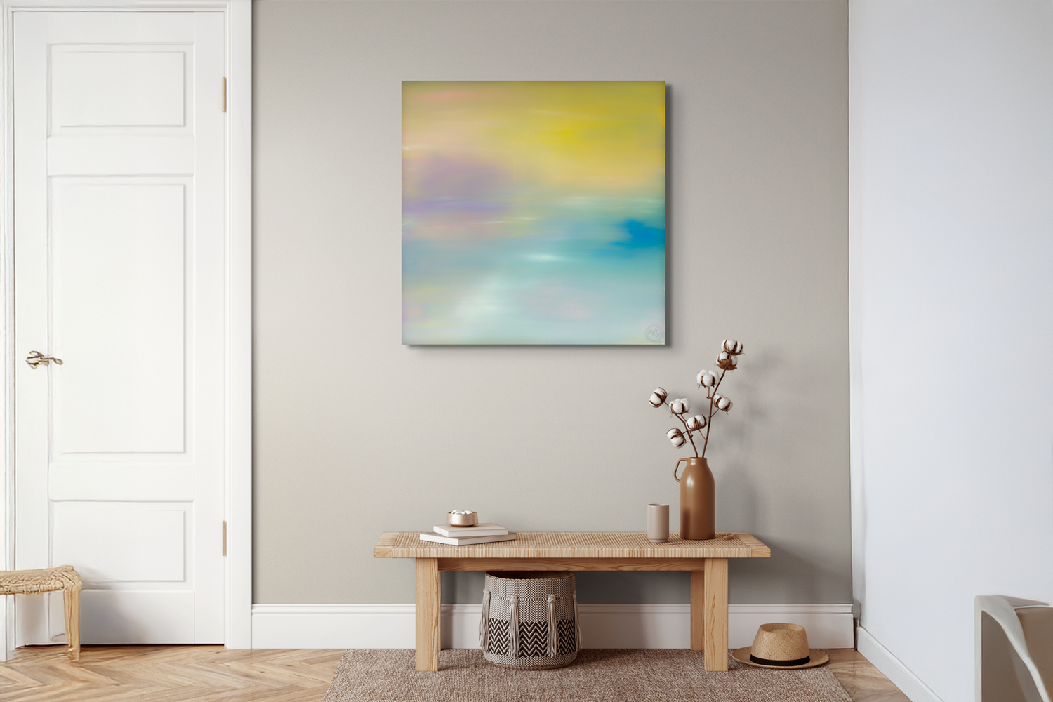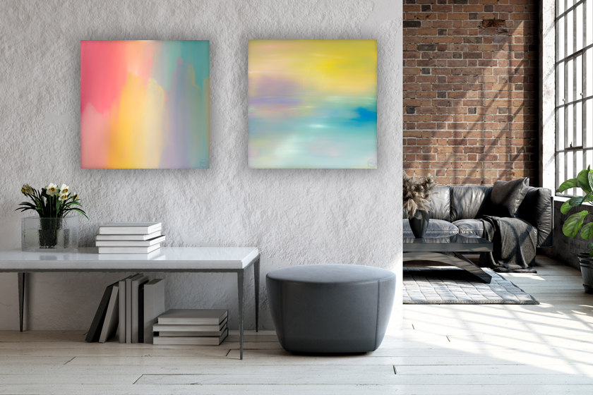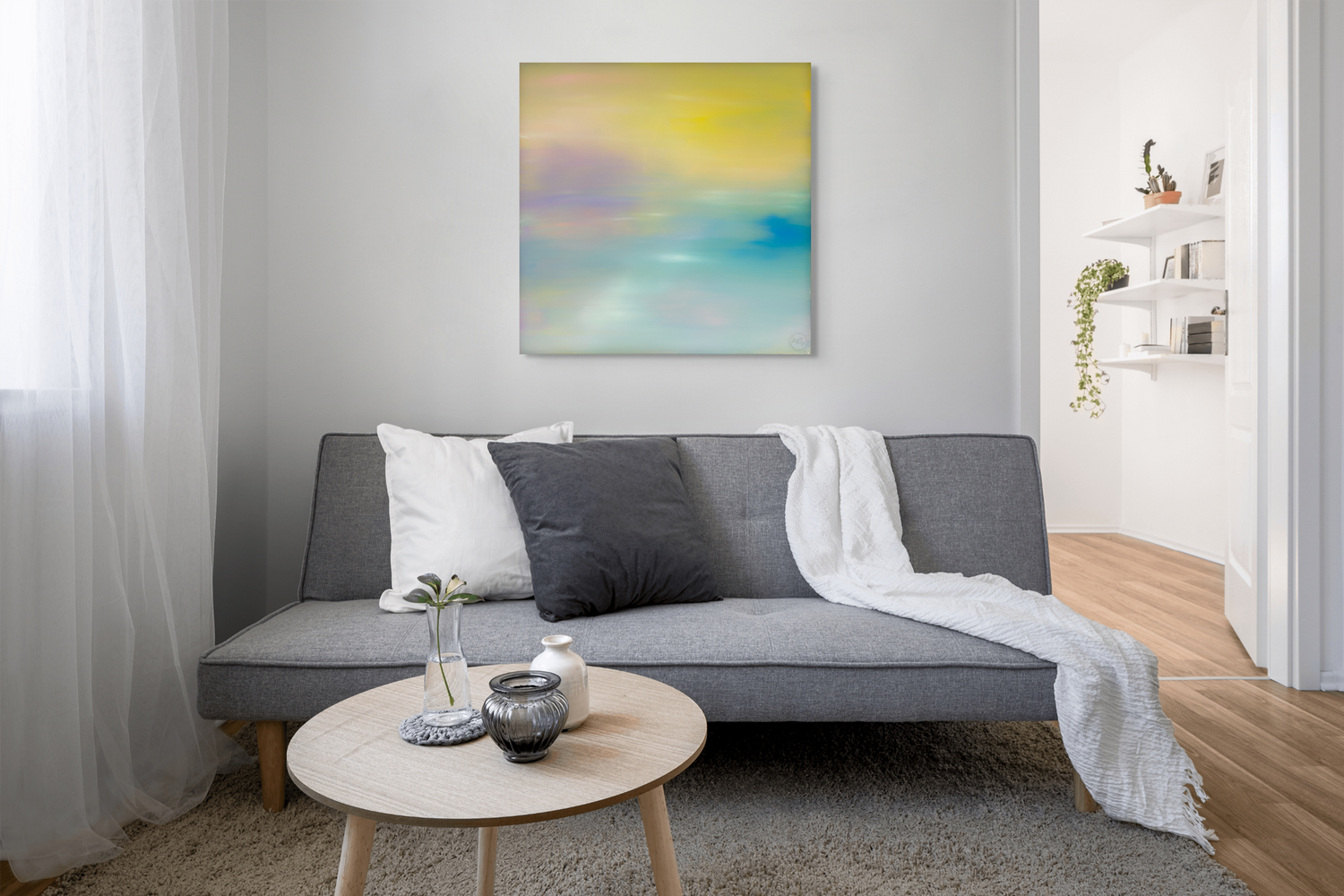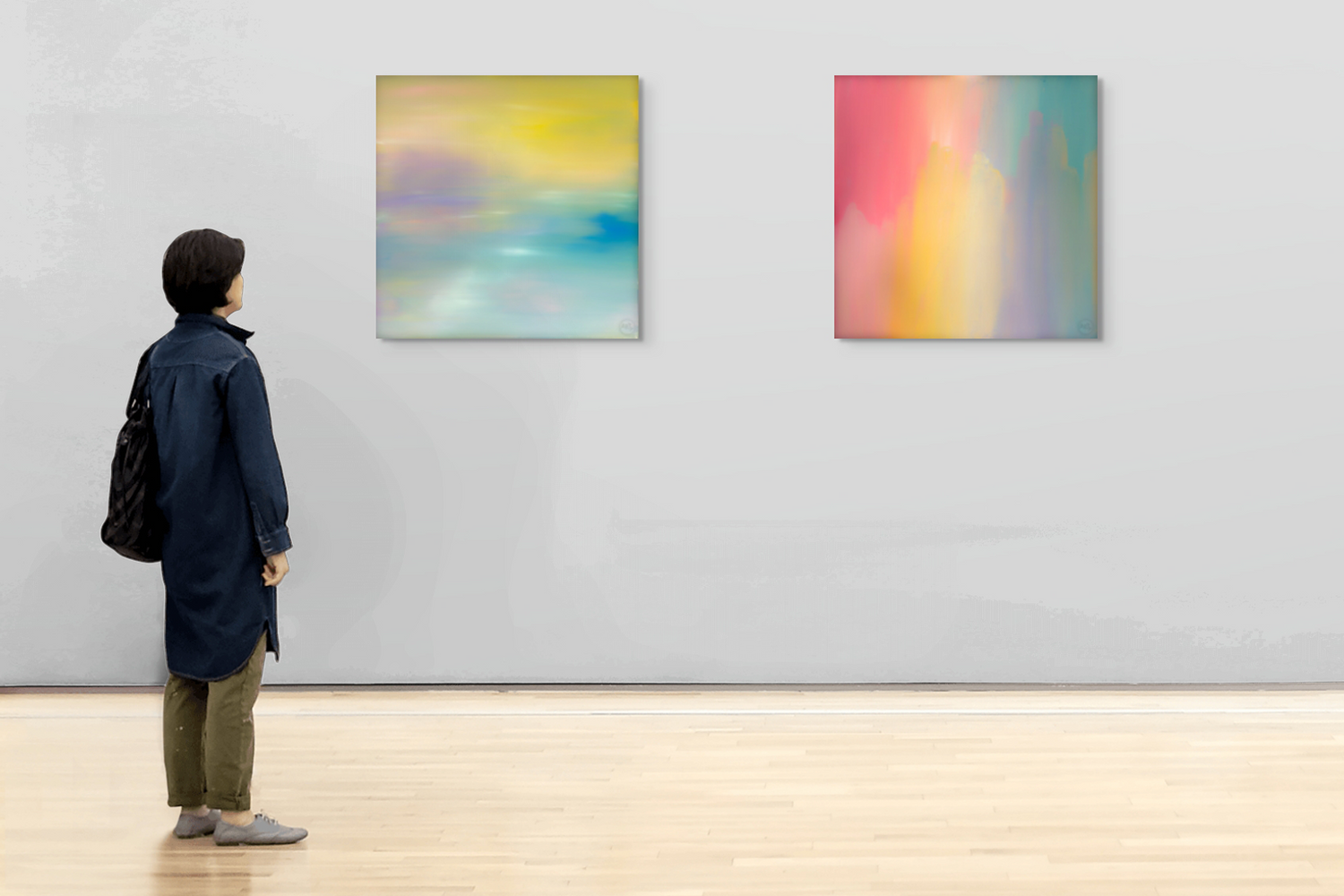 In den Werken aus der Serie „What the fog!?“ wird das Spannungsfeld zwischen Klarheit und nebliger Unschärfe dargestellt, das viele Menschen von Zeit zu Zeit empfinden. Die fließenden Verläufe auf den Leinwänden wirken, als würden sie durch eine unsichtbare Kraft verwischt und erzeugen dabei eine beruhigende und zugleich energetische Wirkung, die uns in eine Welt der Farben und Emotionen eintauchen lässt.