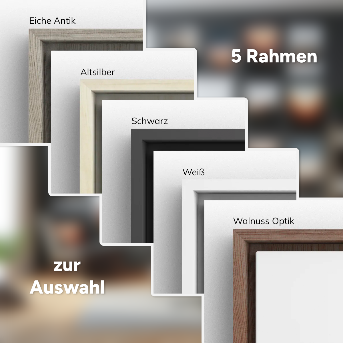 Auf Wunsch rahmen wir dein Lieblingsposter – du kannst aus 5 Farben wählen.