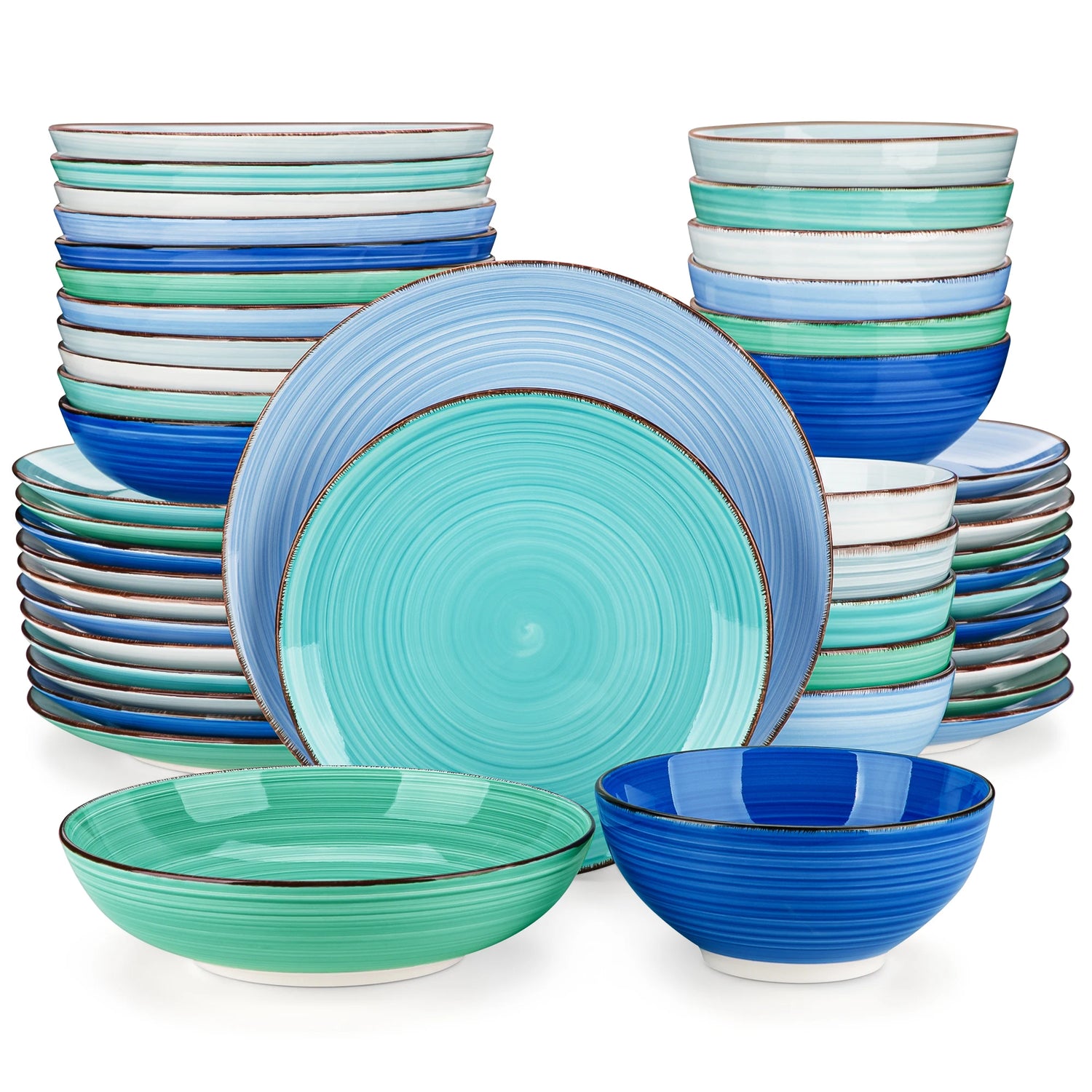 Das robuste Keramikgeschirr aus Steingut ist hochwertig verarbeitet und für den Einsatz in der Spülmaschine sowie der Mikrowelle geeignet. Die Oberfläche ist absolut kratzfest. Ob schnelles Mittagessen oder festliches Dinner – das Set vereint Design und Funktionalität. Nach dem Essen lässt es sich platzsparend und kompakt im Schrank verstauen.