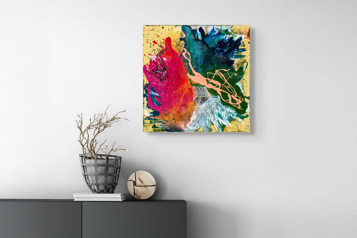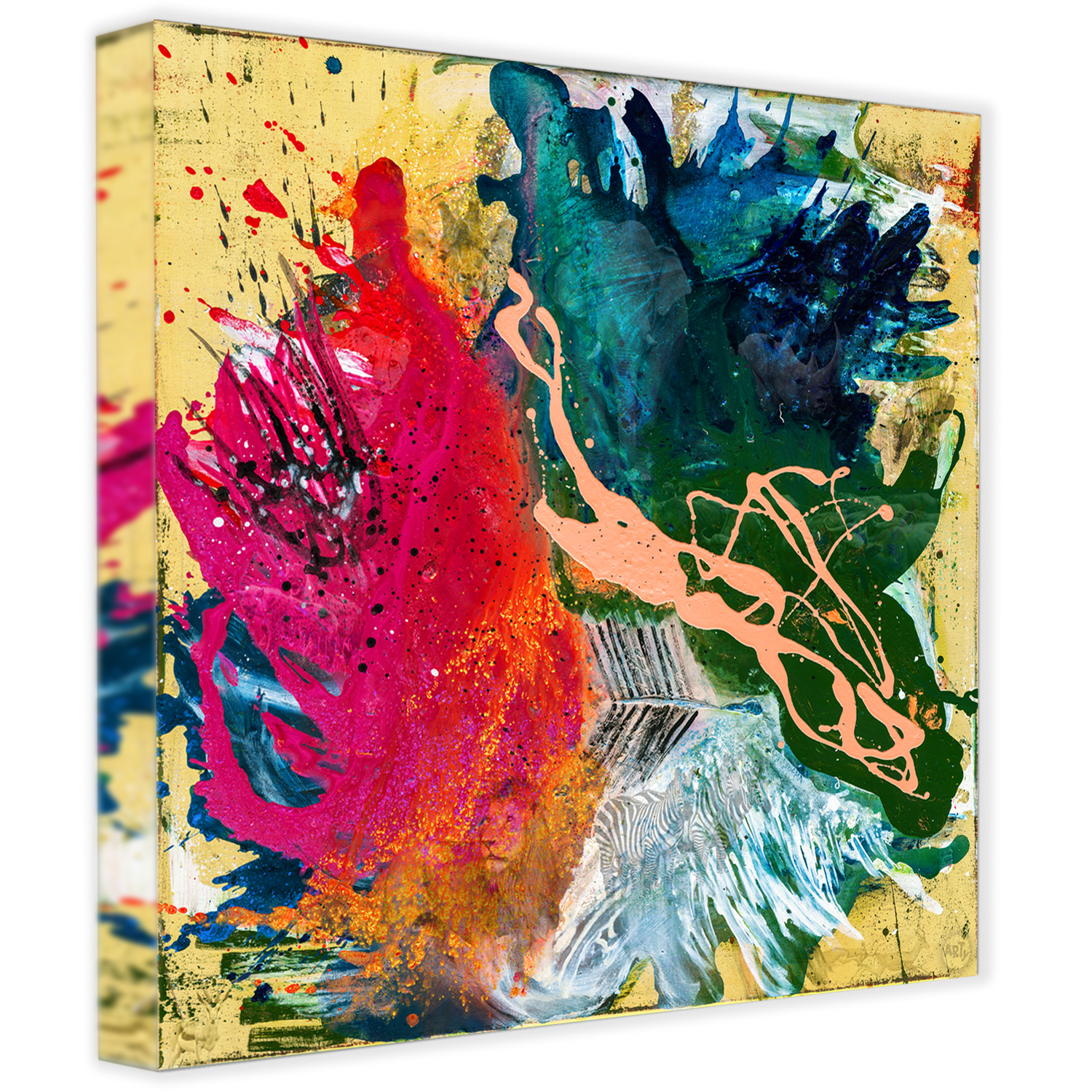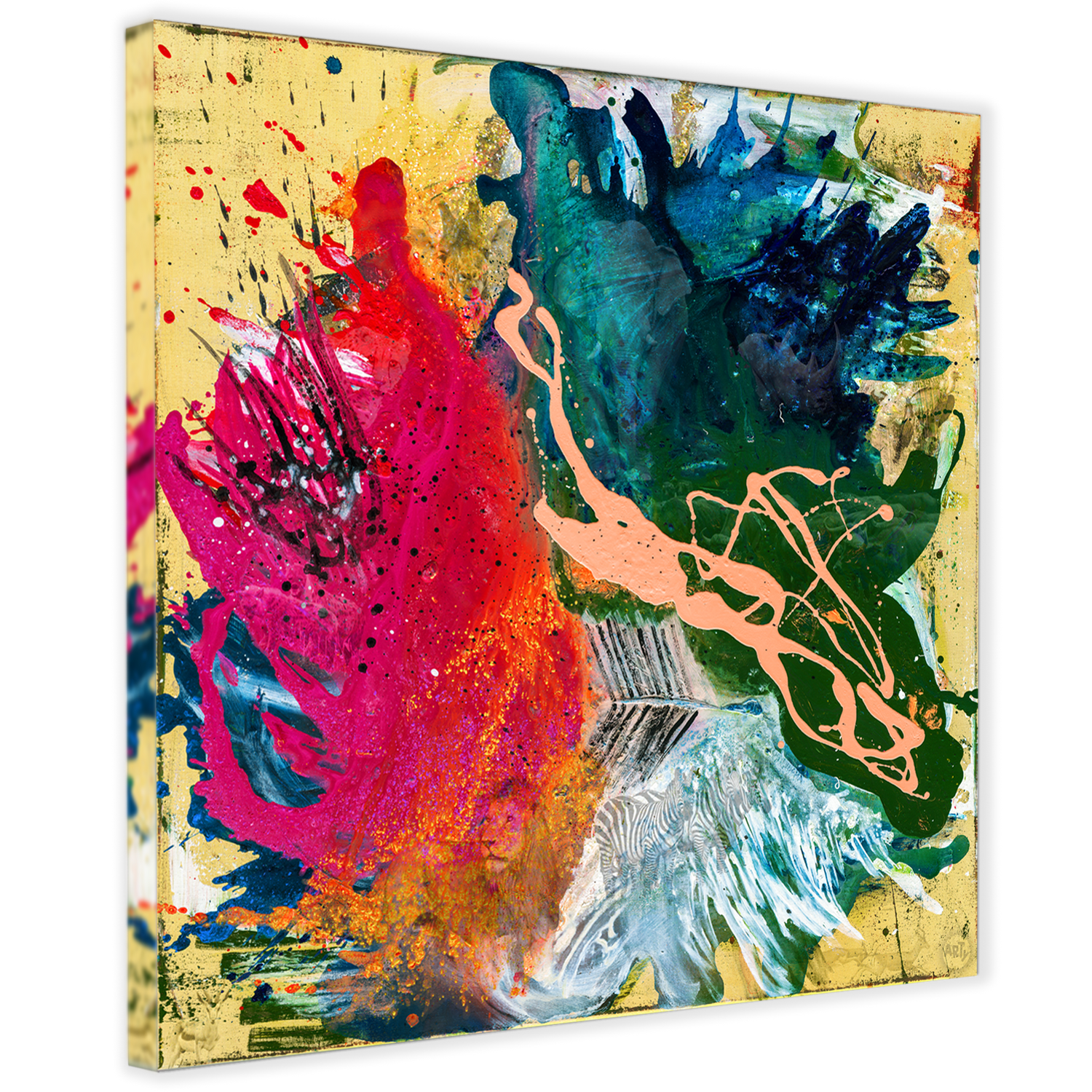Die Serie ECOSYSTEMS beschäftigt sich mit den beeindruckendsten Ökosystemen unseres Planeten. Das Werk Savanna zeigt eine abstrakte Interpretation des Lebensraums in der Savanne und hat nicht nur eine starke Präsenz im Raum, sondern offenbart auf den zweiten Blick zusätzlich spannende Details: im Bild verstecken sich Tiere, die das Ökosystem charakterisieren und die durch den Einfluss des Menschen bedroht sind.