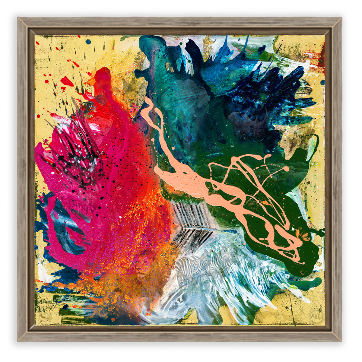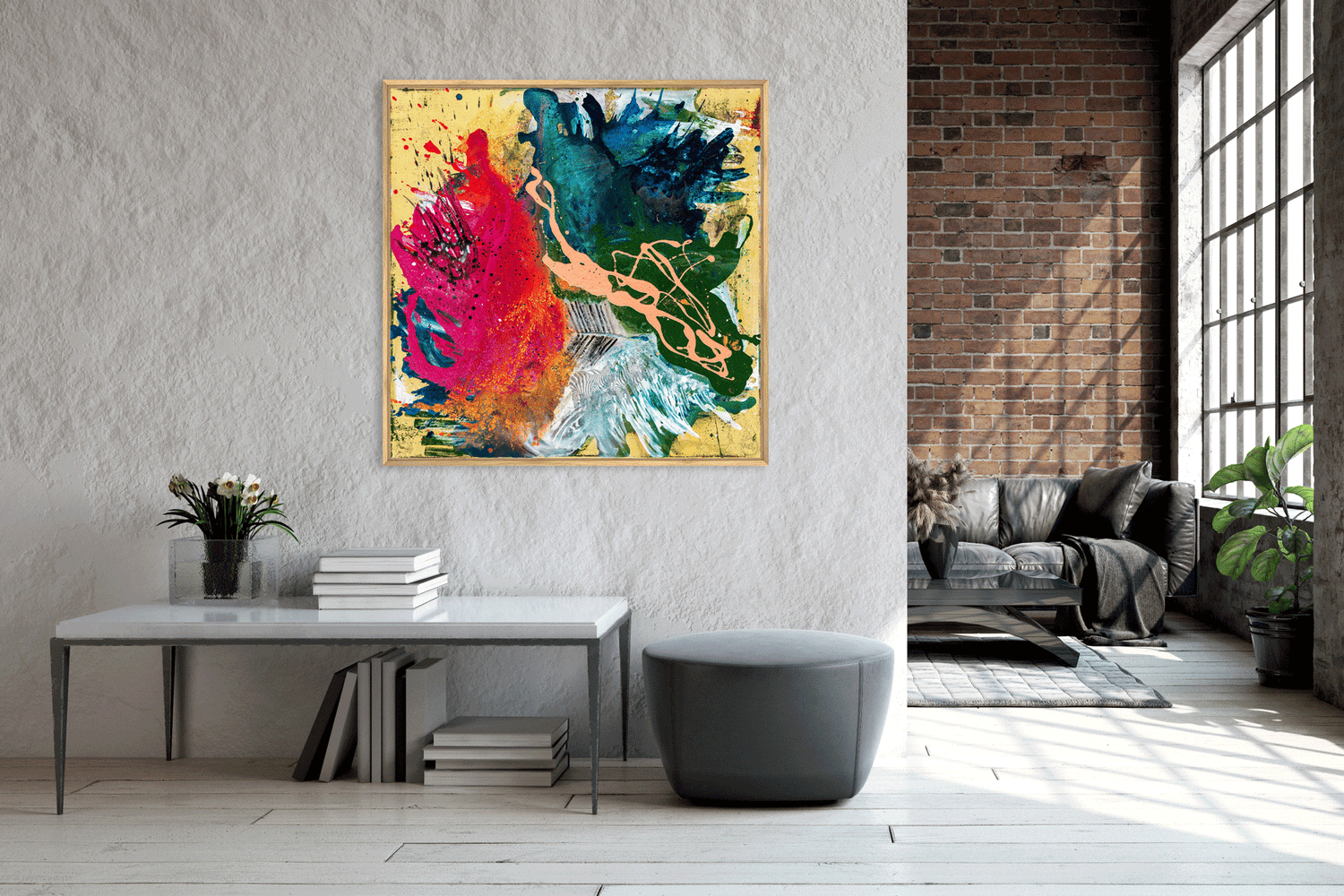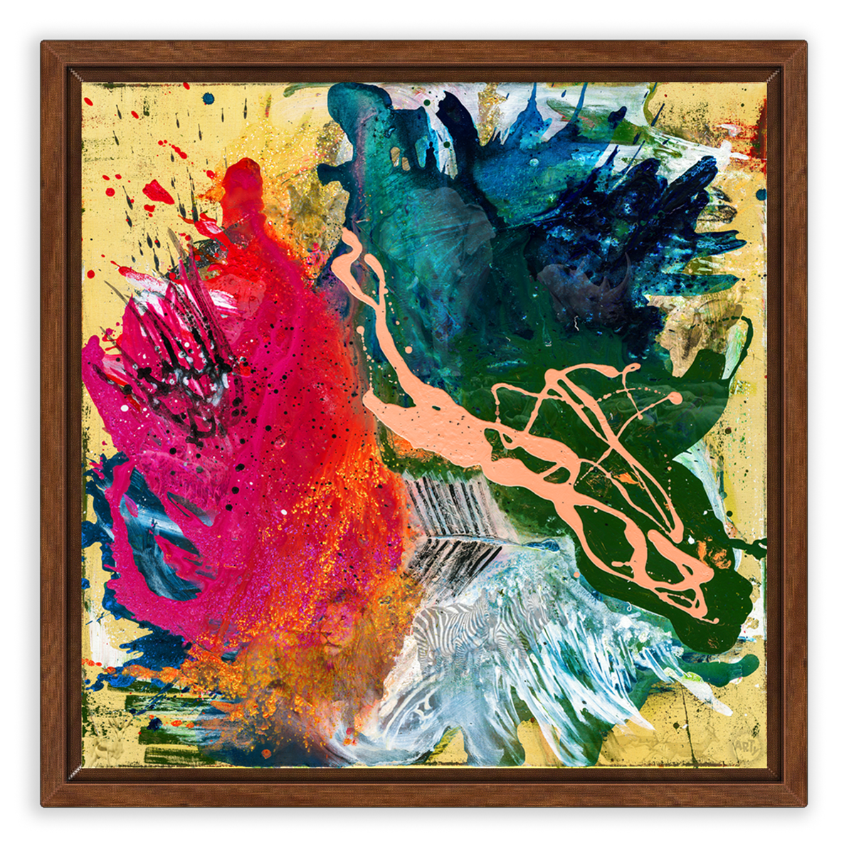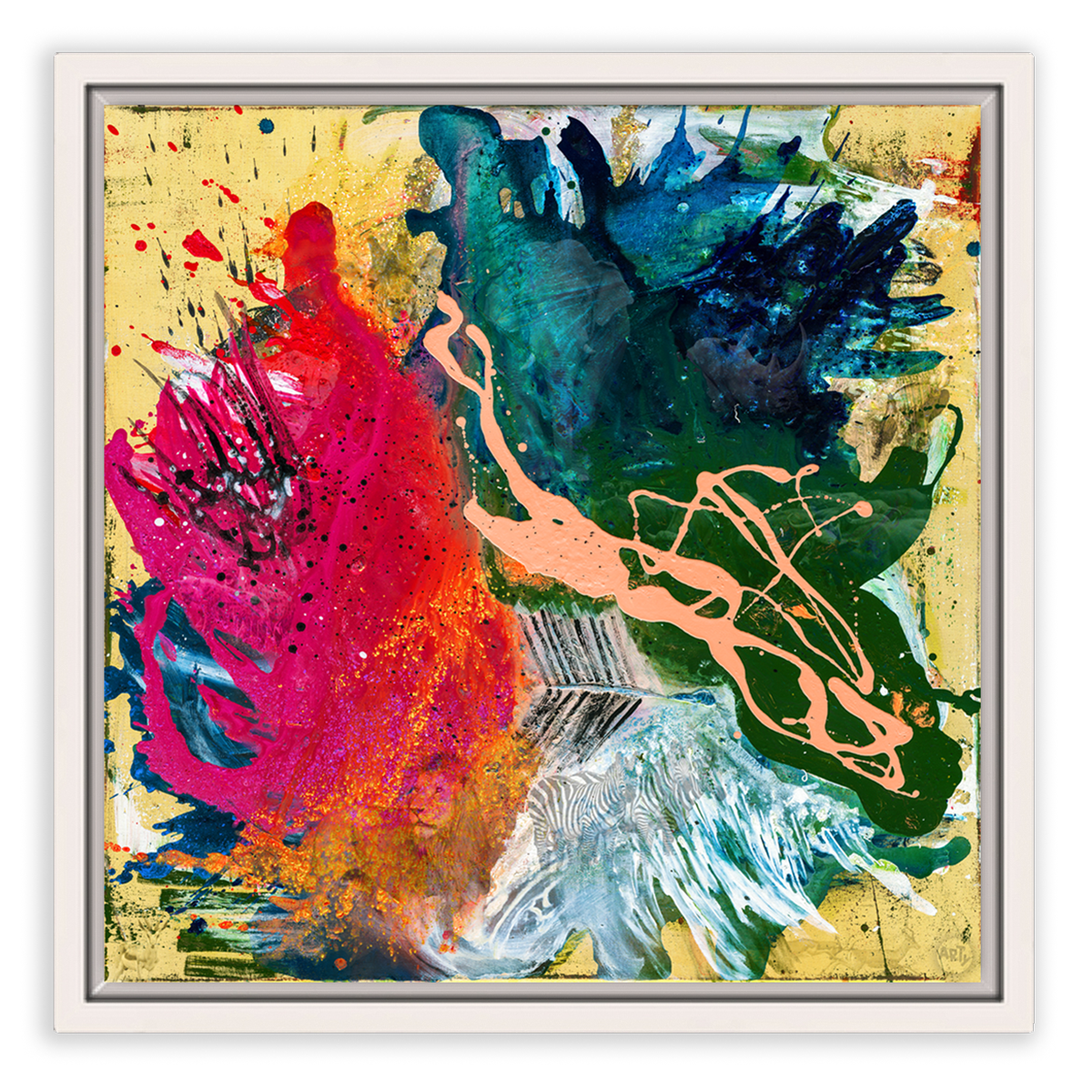• Per Hand auf Echtholz-Trägerrahmen gespannt