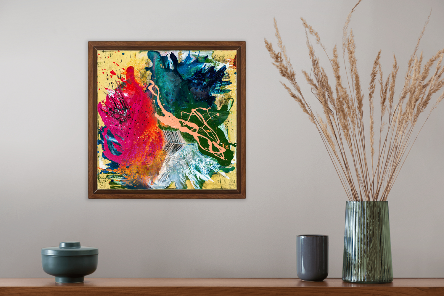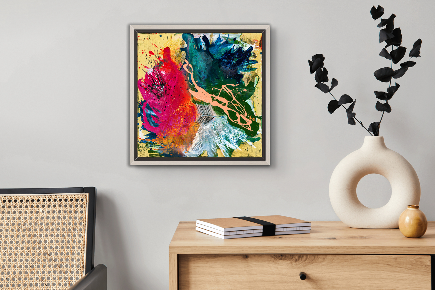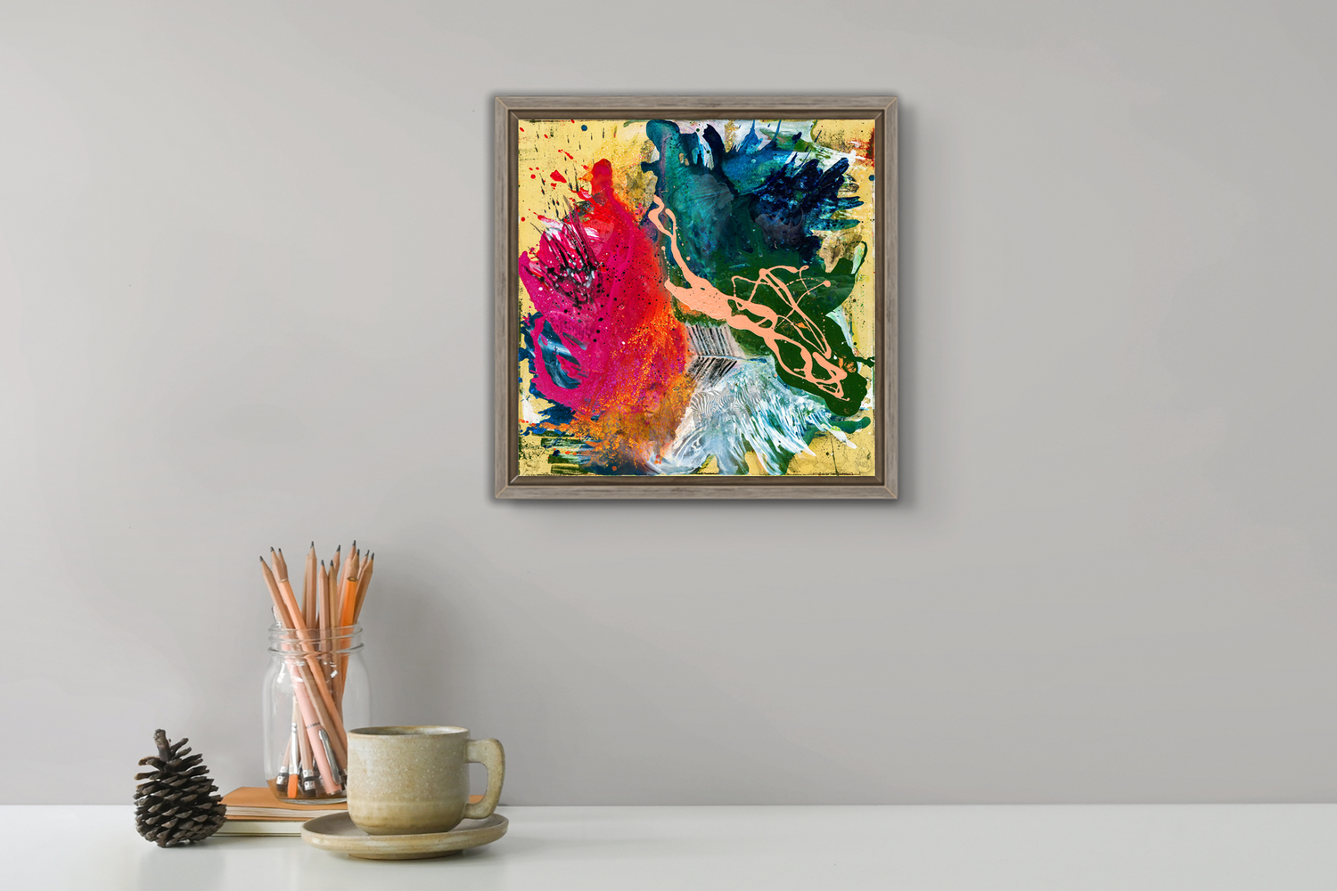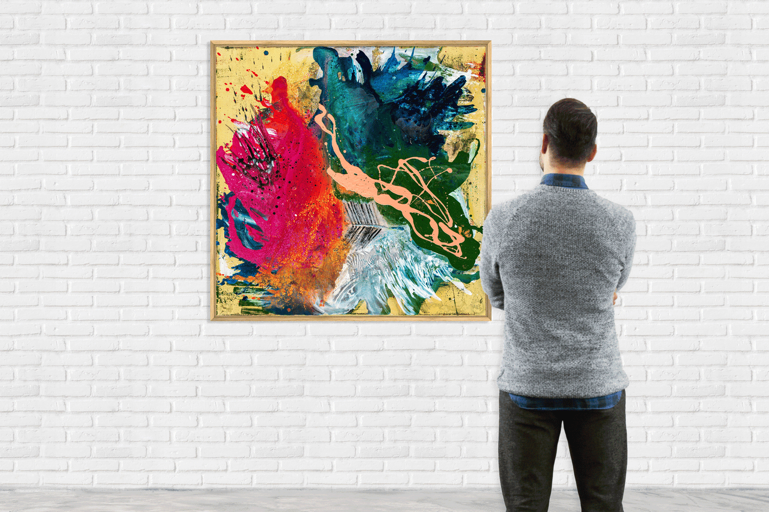 • Per Hand auf Echtholz-Trägerrahmen gespannt